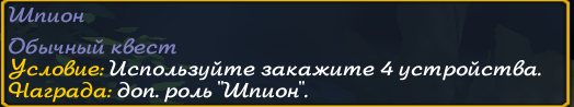 Наградой за выполнение задания является наблюдательное устройство, которое открывает на долгое время 1 из 6 регионов карты. Благодаря ему, вы сможете отследить, кто где ходит. Или например, отследить убийство, если вы увидите двух игроков на определенном регионе рядом друг с другом и как один из них исчезает из карты.