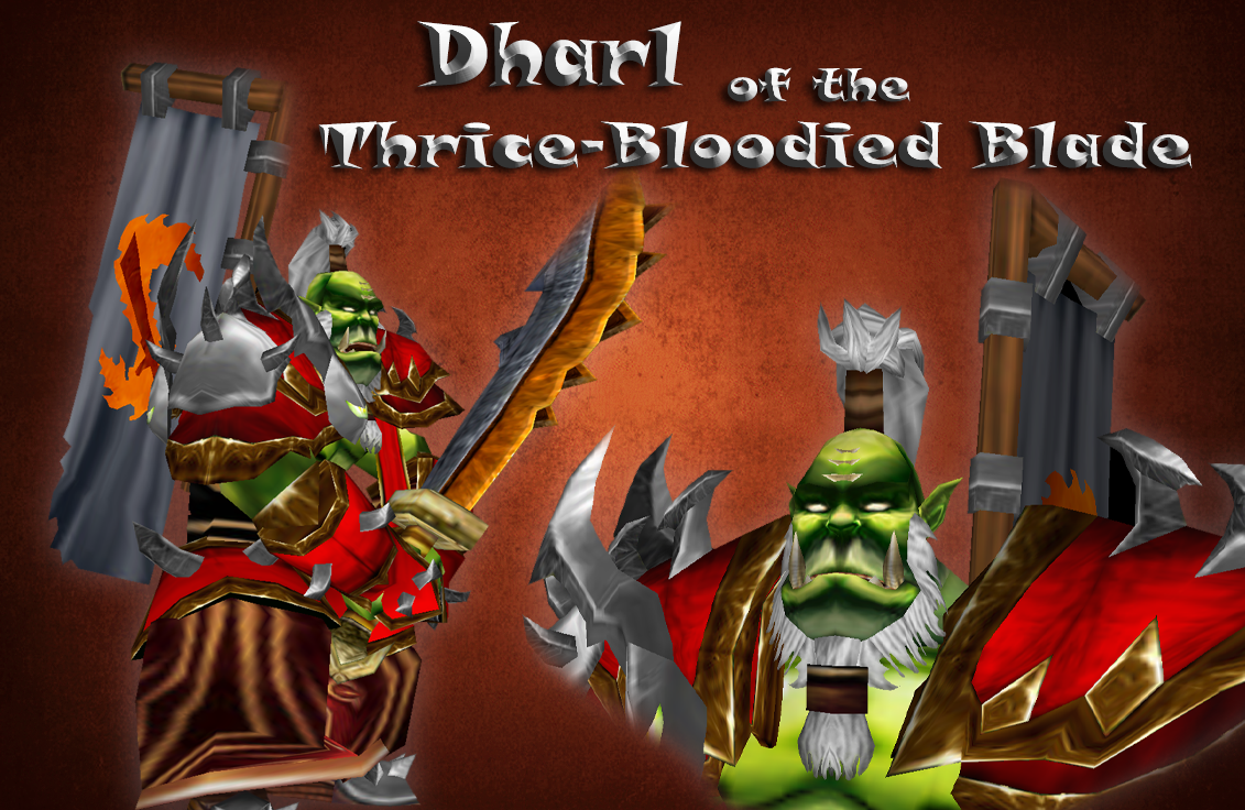 Дхарл Трижды-Окровавленный Клинок — отец Люка Остроглазого и дед Горна, мастера клинка и варвара. По словам Сеска, бывшего брата Горна, он — военачальник клана Пылающего Клинка, мастера клинка и варвара. По словам Сеска. Дхарл был «слабаком и трусом, который завел свое племя в засаду и был убит».
