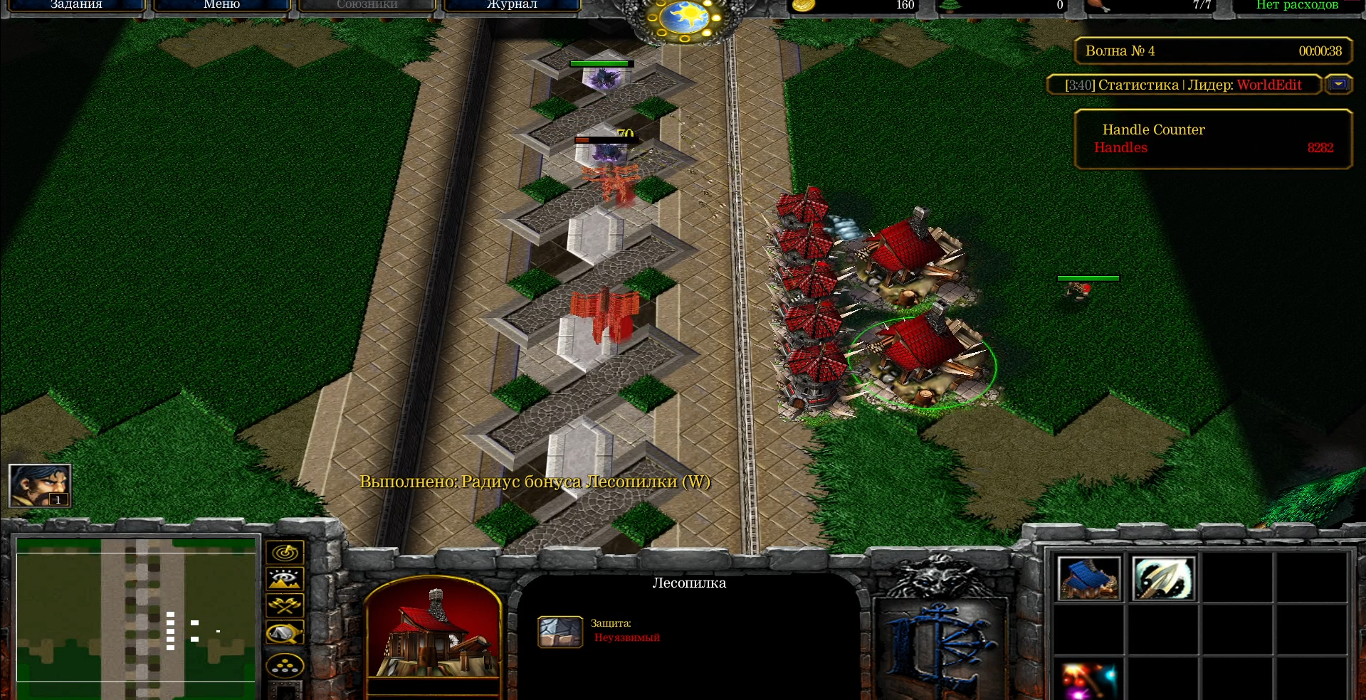 Простая карта в жанре TowerDefence где игрокам предстоит собрать комбинацию из построек, чтобы остановить пленников (20 волн суммарно занимающих 20 минут).