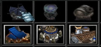 В карте представлены [ 6 ] типов зданий, каждое из них передает соседним зданиям свои пассивные навыки или умения( к примеру строжевая башня передает соседним зданиям мультишот).