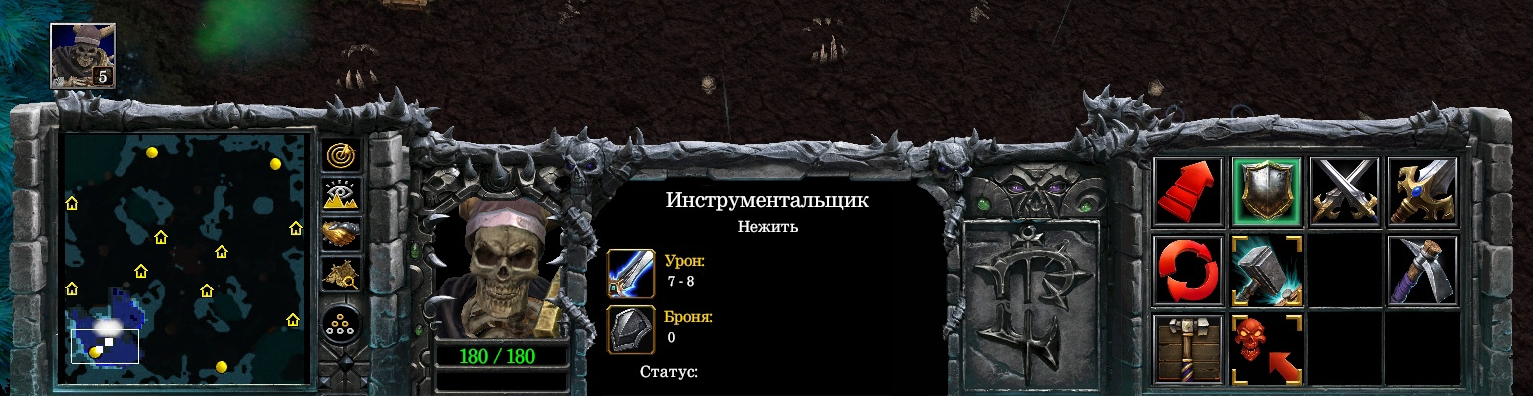 Для гурманов – особый интерфейс под эту скелетную фракцию, который представляет смесь интерфейсов Нежити и Альянса. Примечание: интерфейс делался рассчитанным на использование ИМЕННО Альянсом. Что будет, если пытаться впихнуть его другим фракциям – не знаю.