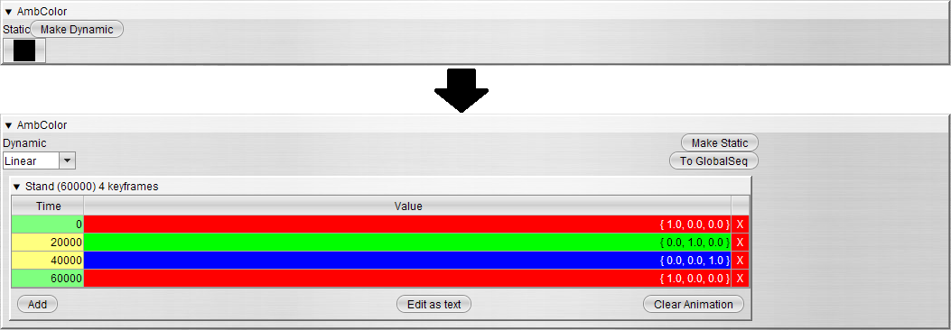 - У нее есть одна анимация Stand длиною в 60000 кадров - она условно содержит инфу о смене дня и ночи, это можно понять по анимации цвета Color и AmbColor.