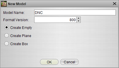 Будем создавать DNC с нуля. Для дальнейших опытов сделаем костяк нашей модели - в RMS Twilac Edition через File - New откроется окошко создания модели, назовем ее DNC, остальные поля оставим дефолтными.