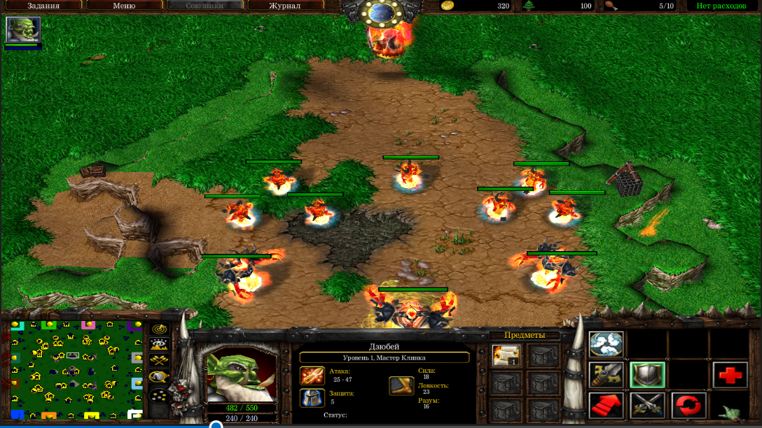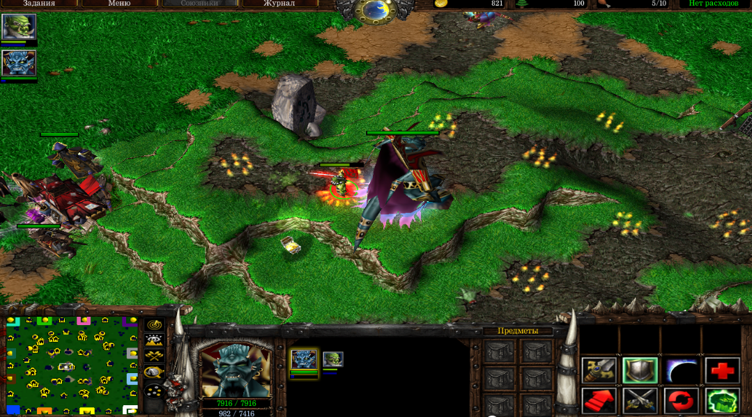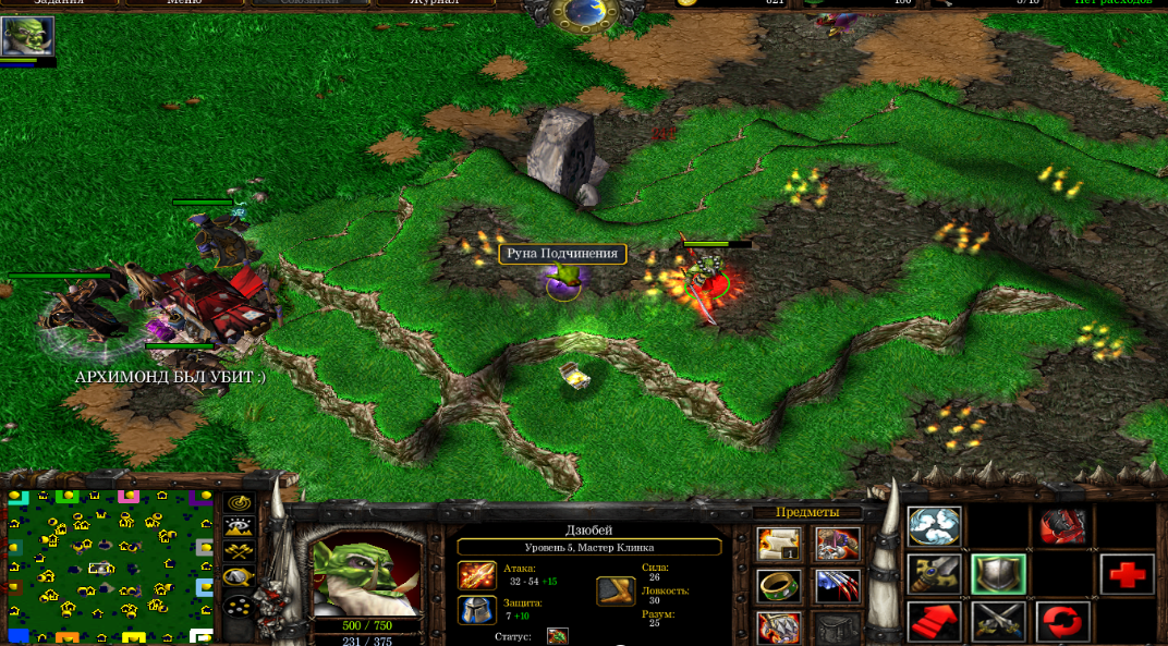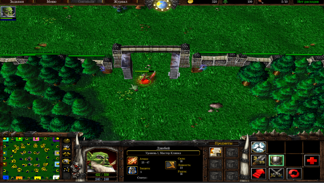 Основные базы спавна игроков окружено стенами и есть механические ворота с рычагом в рудниках (очень много золота), в также на карте очень сильные крипы. В центре карты находится Архимонд со своей свитой (они очень сильны). Из них выпадает крутой дроп, а сам Архимонд после поражения вступит на вашу сторону.