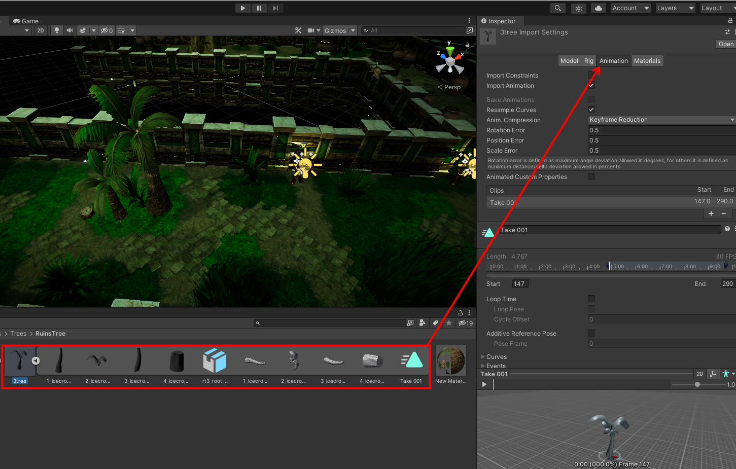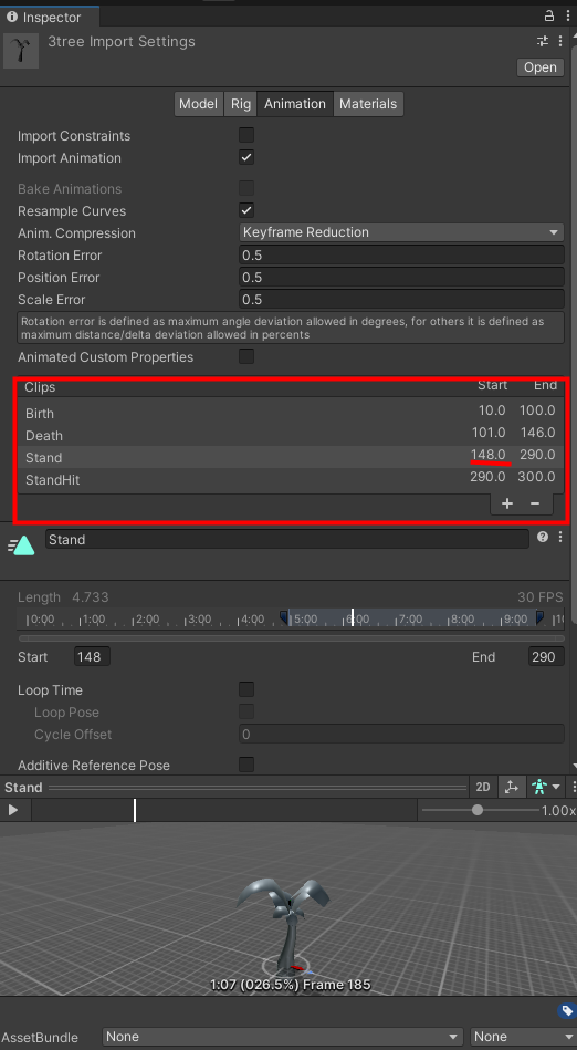 Перетаскиваем FBX модельку в юнити вместе с текстурами и вот незадача, да анимация всего 1 и единая