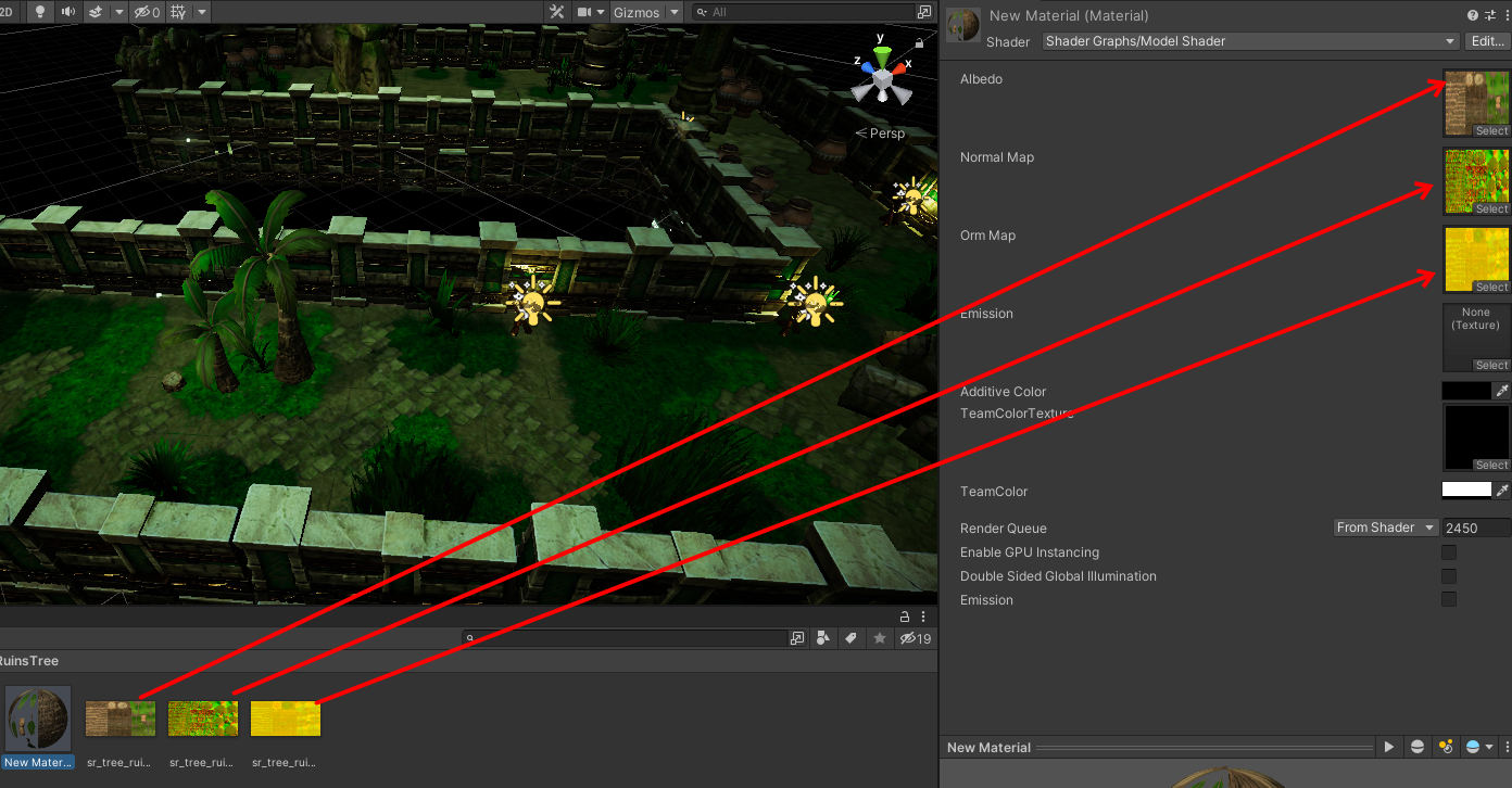 Просто перетянуть диффузную текстуру можно, но эти модельки тем и хороши что внутри них есть _orm и _normal, поэтому делаем свой шейдер
