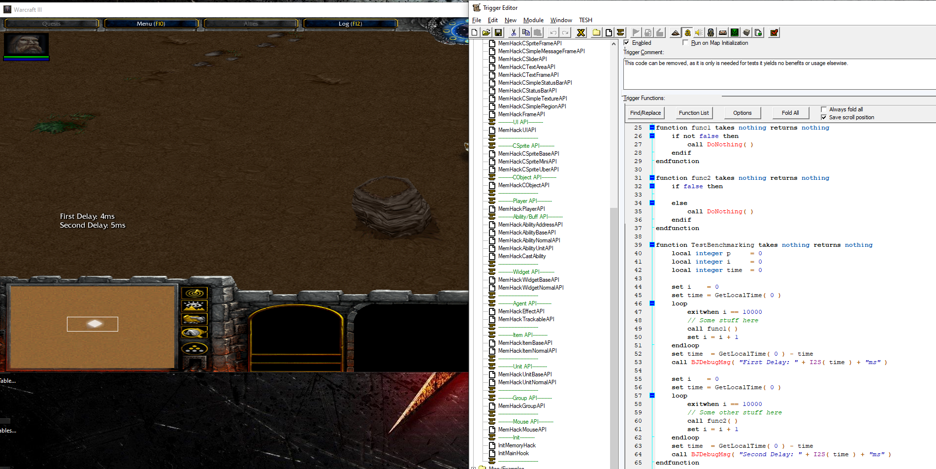За относительно долгое время, что я провёл работая с Jass, я как и другие пользователи получил уйму информации из уст в уста о тех или иных функциях, методах или же проблемах, которые присутствуют в языке Jass. Однако, практически большая часть из этой информации не имела ни подтверждения, ни малейшего примера, фактически всё было основано на "наблюдении" и якобы "тестах". Потому, когда я дополнил начальную наработку MemHack, и добавил возможность делать бенчмарки, а также разобрал структуры игры и заручился CheatEngine для разбора байткода Jass, мне стало интересно проверить эти мифы на деле.