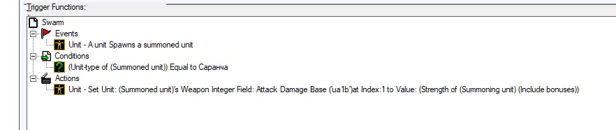 От абилки жука, вот такой триггер работает на призванных элементалях, но не работает на саранче, она не суммон? Как скейлить ее атаку от статов тогда?