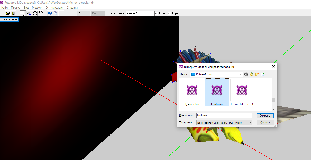 Меч мурлока появился рядом с футманом. Осталось только подогнать его по размерам и настроить анимации. Подробнее об анимациях далее.