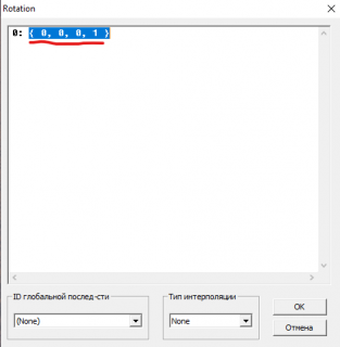 Делая пак эффектов, мне в голову пришла идея анимировать, с перемещением и масштабом вопросов нет. А вот вращение... Как моделер, я знаю что при вращении используется 3 числа, и каждое число означает вращение по оси XYZ. А в модэл эдиторе все иначе, там 4 цифры. Не могли бы вы пожалуйста подсказать что каждая из цифр означает?