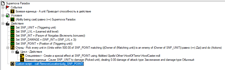 это триггер (неполный, ниже будет полный). в значение урона я хочу вставить некую переменную.