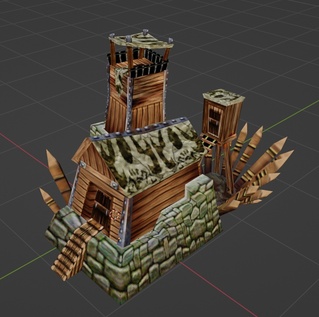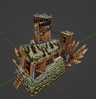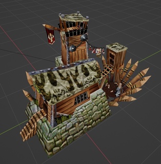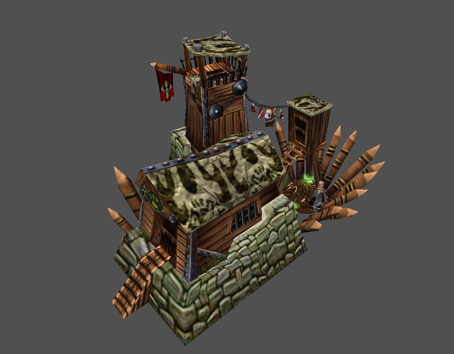 По плану на башенке должен был ещё сидеть мини-гнолл и дудеть в трубу во время анимации work... Но сейчас думаю, что это не особо соответствует тому, как постройки в стандартном Warcraft 3 выглядят и модель будет несколько выбиваться из заданного стиля.