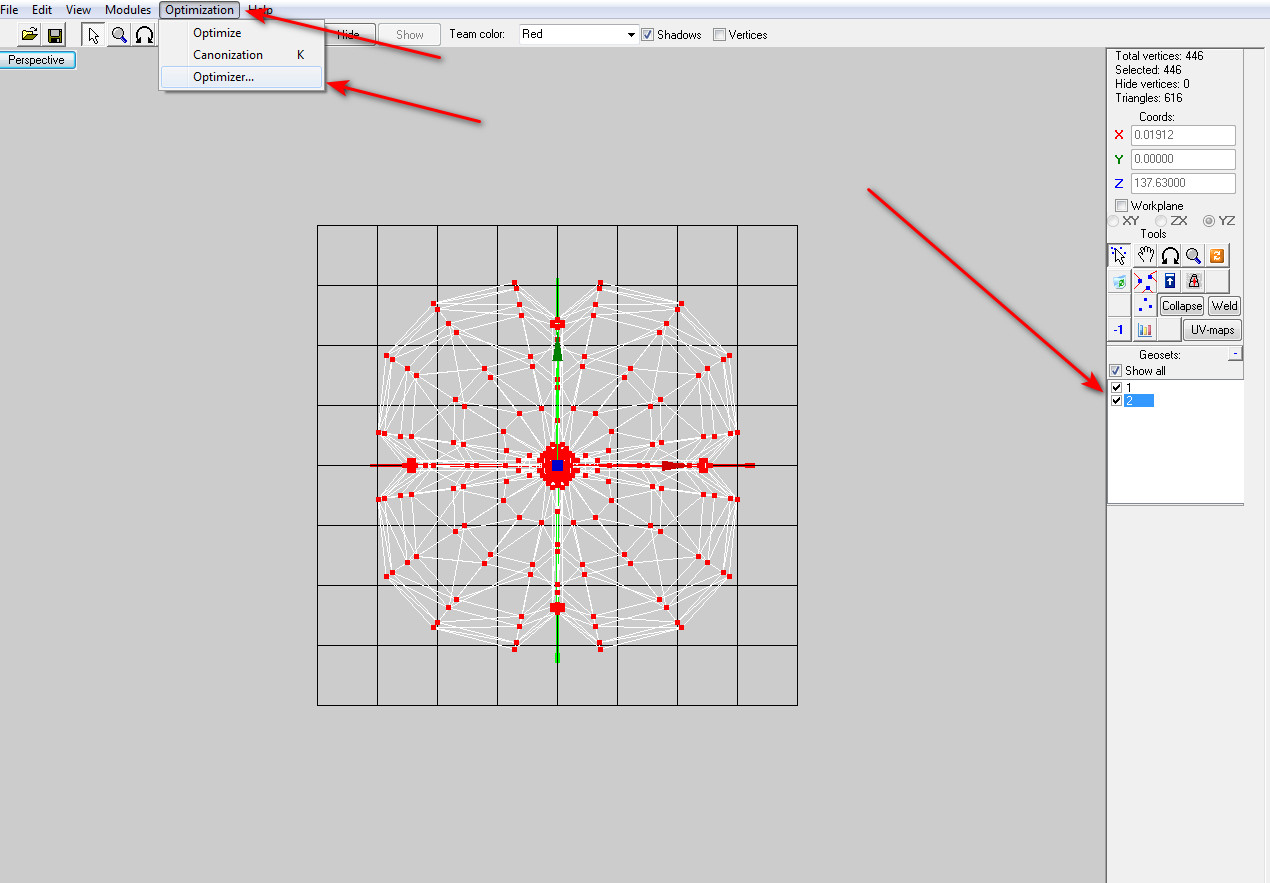 Откройте модель в программе Mdlivis, выберите все вершины (нажмите ПКМ по единице и выберете пункт Switch All).