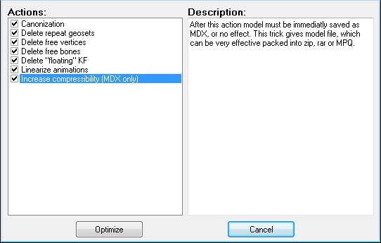 После этого нажмите кнопку сверху Optimization -> Optimizer и выберете все галочки.