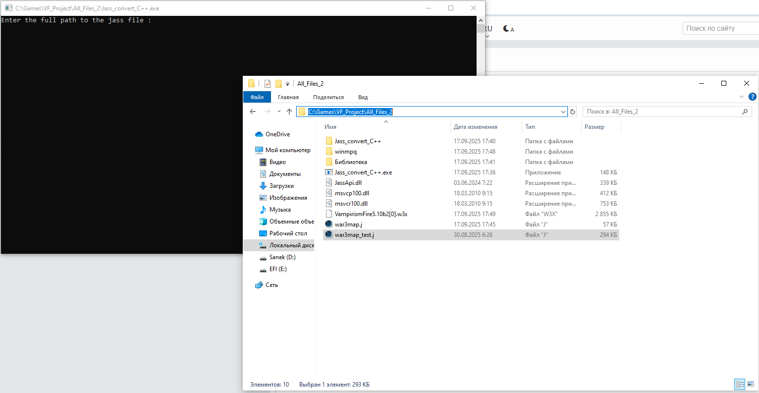 - Конвертер из Jass кода в код C++, который создаёт два файла war3map.cpp и war3map.h для подключения ко второму проекту "Библиотека".