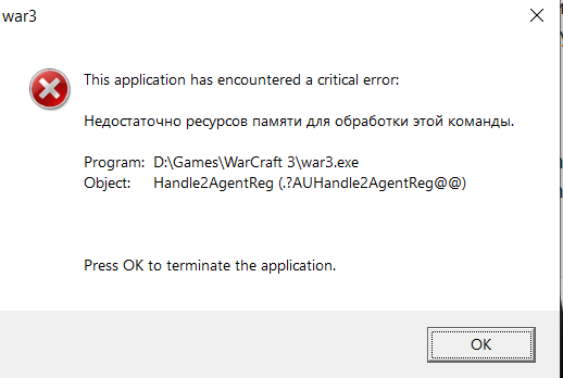 А ошибку с таким кодом я наблюдал, когда варик использовал всю память, какую умел использовать. Соответственно, такое могут вызывать приличные объемы утечек в карте. Чтобы как-то удостовериться в этом, вы можете повторить ситуацию, проверяя варик периодически, например, в диспетчере задач. Если увидите цифру около 1гб - весьма вероятно, что это оно.