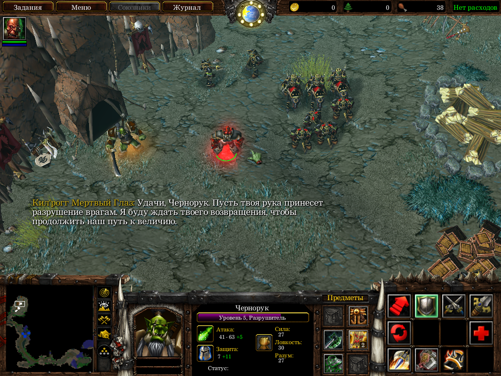 Способности у героя скучноваты и моделек Чернорука вроде в достатке, раз уж канону следуете и модельки орков Кровавой глазницы тоже на хайве, вроде, есть . Не совсем ясно зачем фел оркам хаос-демедж, у грантов и всадников одинаковый урон, что на мой взгляд делает последних бесполезными. Квест по освобождению орков в 1 главе какой-то, слишком простенький, можно было клетки расставить на большем расстоянии друг от друга