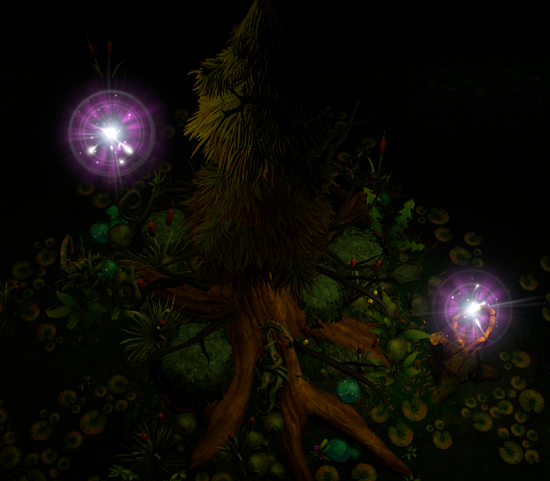 Далее работаем в том же стиле с остальной частью карты, добавляем больше Lily Pads Floating по всему периметру воды, добавляем арки из фелвуда - они в этом стиле смотрятся бесподобно. Так же есть интересная фишка - в рефордже добавили некоторые модели, одна из них: Луносветское дерево. В одной из его вариаций это высохшее белое дерево, которое можно покрасить и использовать для общих целей. В конечном счёте добавляем лёгкий дождь из ашенваля как погоду. Выглядит всё в игре в дальнейшем это так: