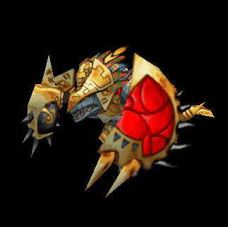 Вожак сцинков с щитом и трубкой. Есть анимации плавания. Есть версия-юнит и версия-герой.