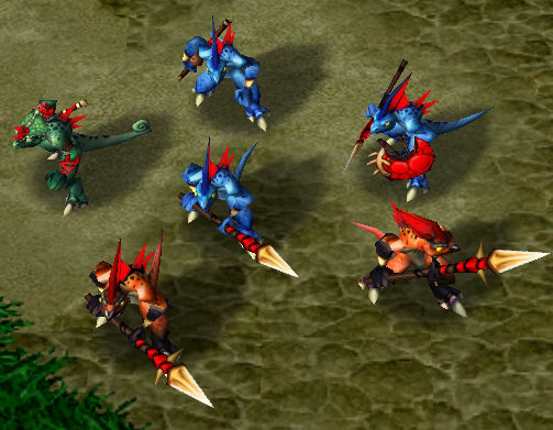 Набор юнитов сцинков. Есть юнит с копьем, с дротиками, с трубкой. Есть синий и оранжевый варианты раскраски, а так же хамелеон с трубкой. У всех юнитов есть анимации плавания.
