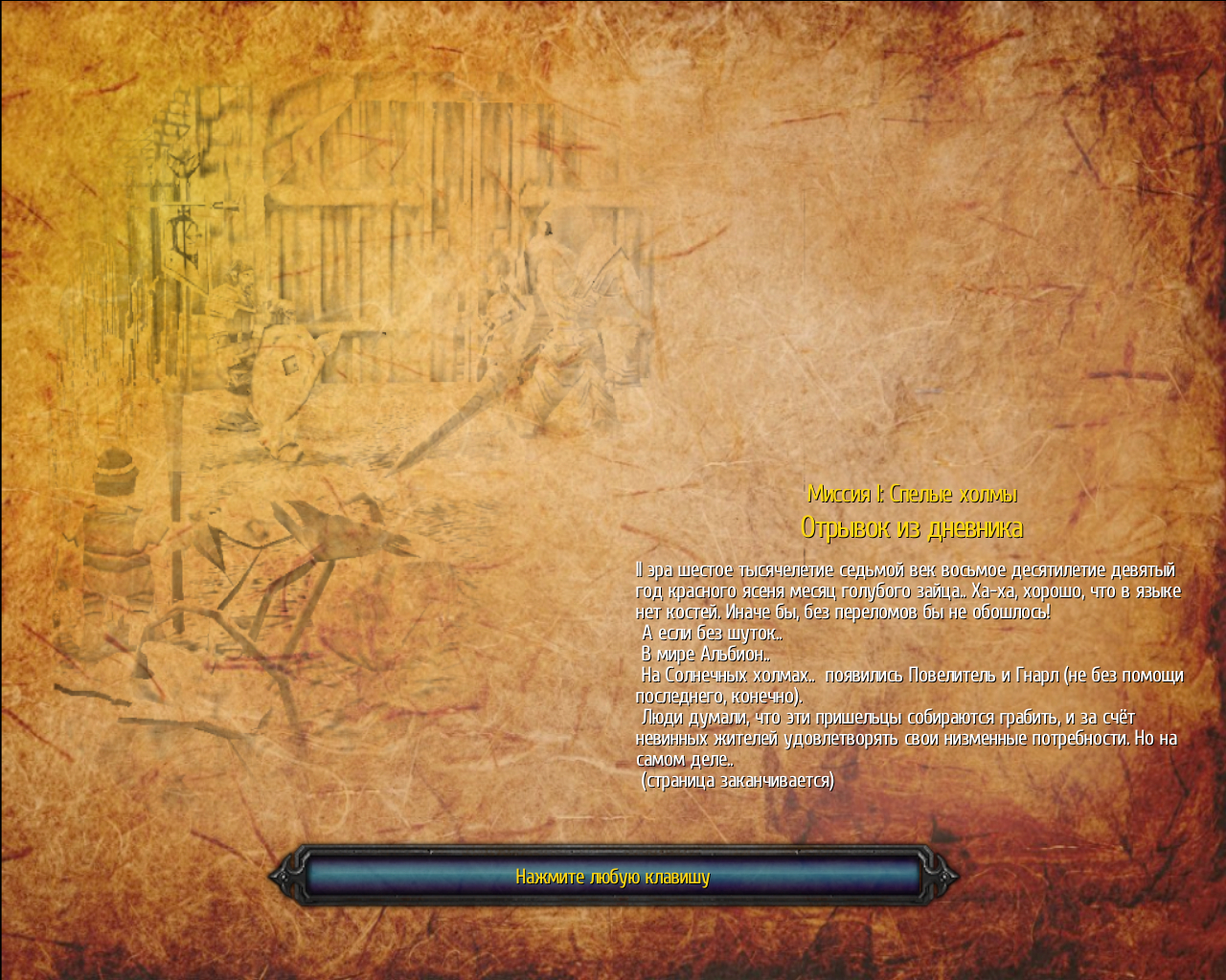 Представляю вам кампанию, которая должна была стать фанфиком по игре Overlord. Соответственно, использованы концепция, музыка и текст из этой игры. При создании первой миссии, автор (то есть я) эмоционально выгорел и более не имеет желания продолжать создание кампании. Если же в ком-то горит огонь энтузиазма, тот может сам её продолжить, флаг ему в руки. Кампания создавалась на версии 1.26, поэтому не могу сказать, будет ли она работать на новой версии.