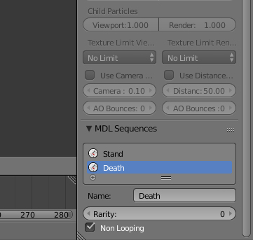Whenever you create two timeline markers with the same name, a sequence will show up in the sequence manager tab, which is at the bottom of your scene tab in the properties menu. This is where you set things like looping and rarity - changing the name in the sequence editor will also change the corresponding timeline markers. If the name contains the word "Walk", you will also get to set a Movement Speed parameter which controls the relationship between the units movement speed and the walk animation playback rate. If you create a Death, Decay, or Attack animation, their non-looping values will default to "False" for convenience.