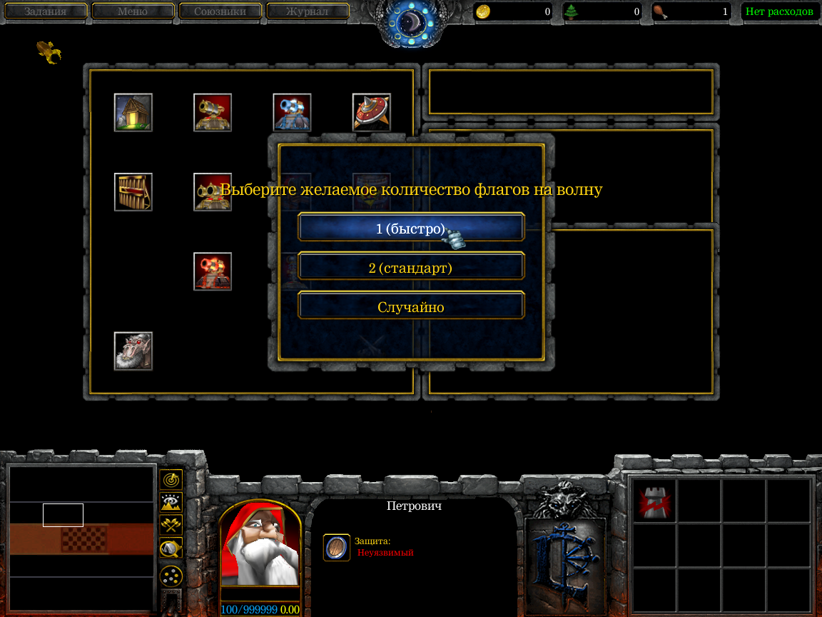 Вы начинаете игры с выбора одного из режимов, отличающихся длиной волны и количеством флагов(усиленных этапов волны)