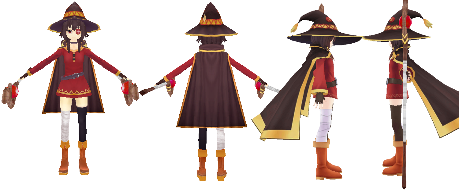 Четырнадцатилетняя архиволшебница из расы багровых демонов, присоединившаяся к группе Казумы Сато. Являясь архимагом, использует только высокоуровневую магию «Взрыв», которая с учетом её характеристик может быть использована лишь раз в день. Тем не менее благодаря высокому урону «Взрыв» на голову превосходит другие заклинания магов. Мэгумин — весьма спокойная и жизнерадостная особа, располагающая большим запасом знаний. Однако, когда дело касается использования «Взрыва», едва способна себя контролировать. По словам Казумы, Мэгумин добра и великодушна, поэтому очень дорожит своими товарищами, изо всех сил стараясь помогать им в бою. При этом её легко можно разозлить, заставив почувствовать себя оскорблённой или оспоренной. Терпеть не может, когда к ней относятся как к ребёнку только из-за детской внешности.