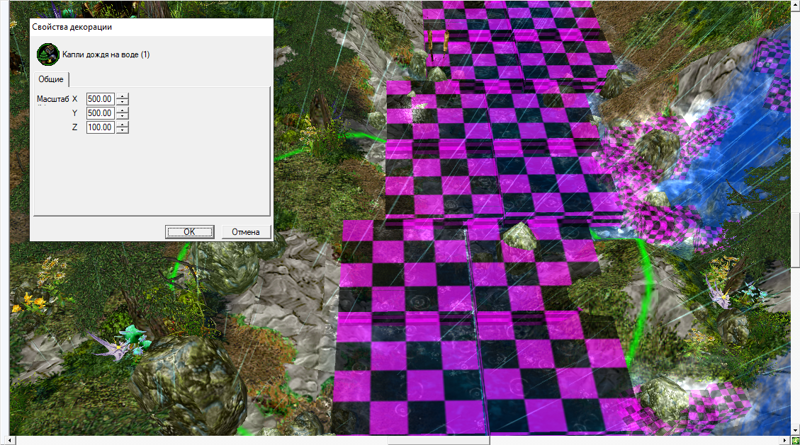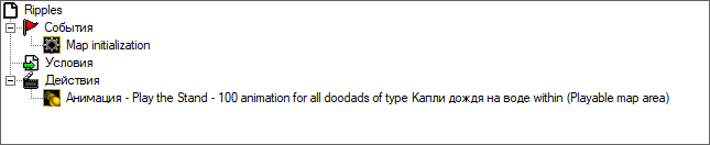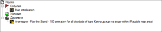В примере было сделано через размещение 2 декораций в точке с размером x5 от нормы, потом копипастом ими по реке прошелся. Триггерно у всех декораций этого типа проиграна анимация Stand - 100 (это не вызывает у декора рандомного спама Stand анимок, а только той что указано).