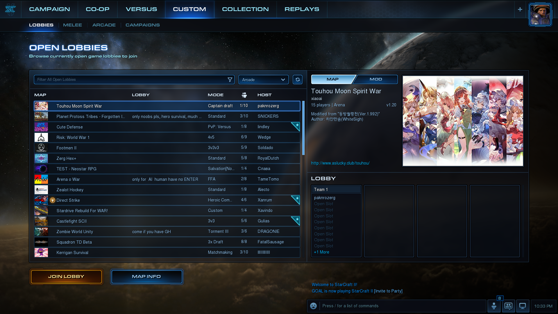 И это я выбрал только "настоящие" кастомки, там ещё есть Melee with mod, чего, кстати, у WC3 никогда не было. Да и в списке только публичные лобби.