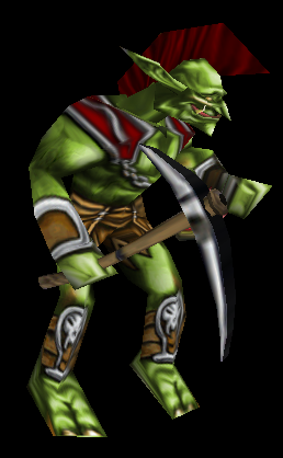 Иконка строителя троллей. Модель есть в архиве ресурсов, но она недоделанная. Нет моделей и анимации вязанки дров и золота с мешком.