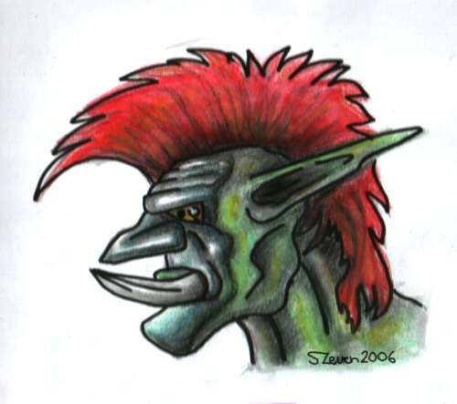 Эскиз головы зелёного тролля.