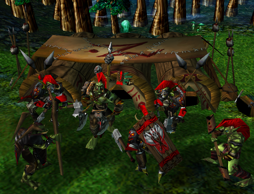 Скриншот из редактора карт. На нем мы видим несколько новых моделей троллей и какое-то задание. Скорее всего казармы. Их не увидите в архиве ресурсов.