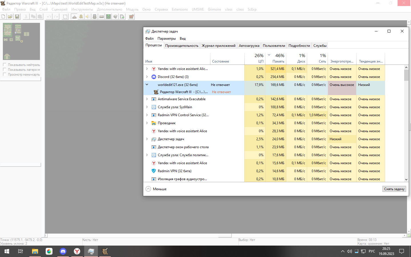Намертво зависает вкладка Сценарий/свойство игрока.