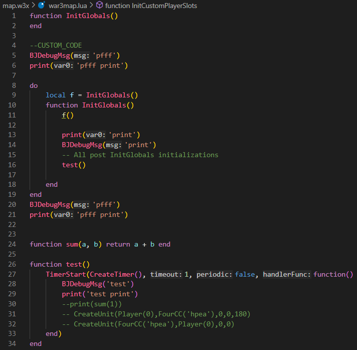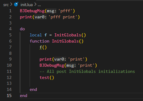 Круто, сработало. Почему вообще эта функция решила запуститься? Тогда почему в моем коде не работает измененная функция InitGlobals? И насколько мне известно все инструкции скрипта выполняются в любом случае при старте так почему тогда не работают мои принты в самой внешней области?(До этого на карте созданной warcraft-vscode подобное сработало) крче я немного запутался