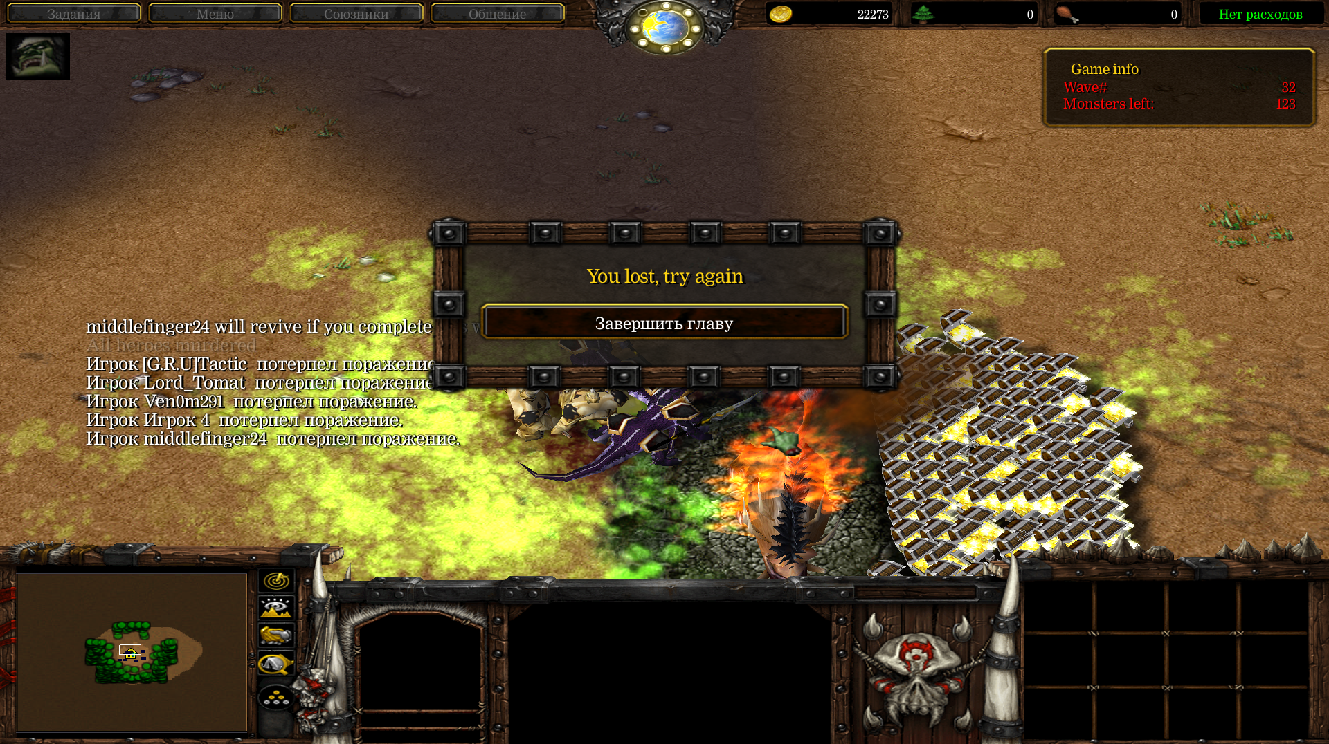 - Если волна пройдена, то погибшие герои возрождаются.