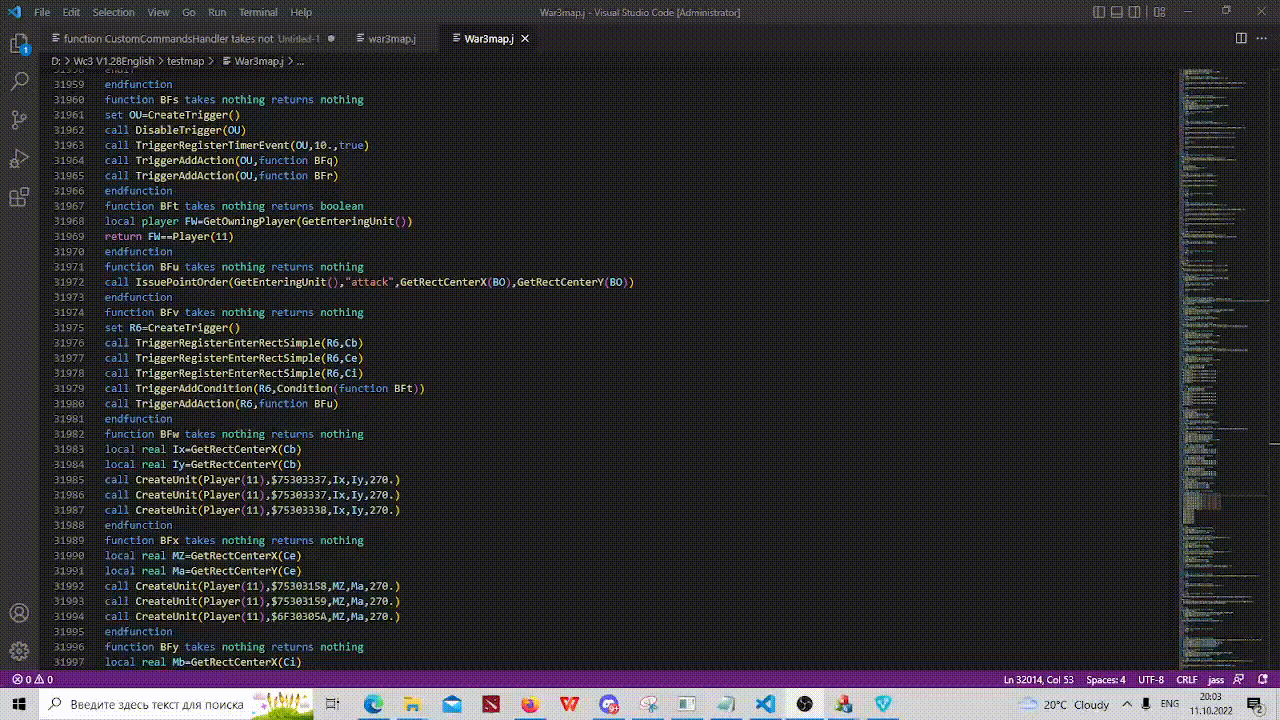 10. Сохраняем наши изменения war3map.j.