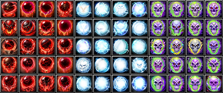 Основа иконок: OrbofSlowness, OrbOfCorruption & OrbOfLightning - но на основе моей иконки. так как на дэфолте промтить не из чего, все изображение покрыто белыми тонами.