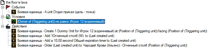 Казалось бы, всё должно работать. Но, если зайти в игру, то триггер будет действовать ТОЛЬКО на игрока 12, хотя его он должен был обойти стороной. Если же поставить, следуя такой логике, "Не равно игрок 1", то игра просто крашнется, даже без уведомления об ошибке.. Возможно ли сделать что-то с этим?