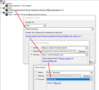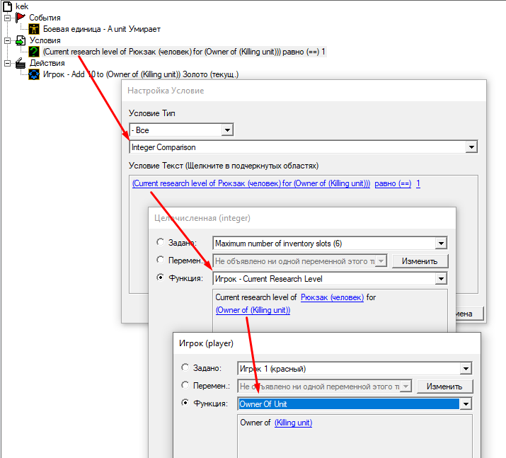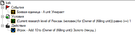 - условие убивший юнит имеет выученное исследование (рюкзак)