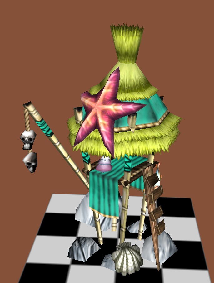 Короткое описание - Небольшая хижина одного водяного, что очень любит собирать необычные вещи и обменивать их со своими сородичами. Иногда у него можно выменять ОЧЕНЬ необычные находки. А как он смог из целой лодки сделать себе крышу?