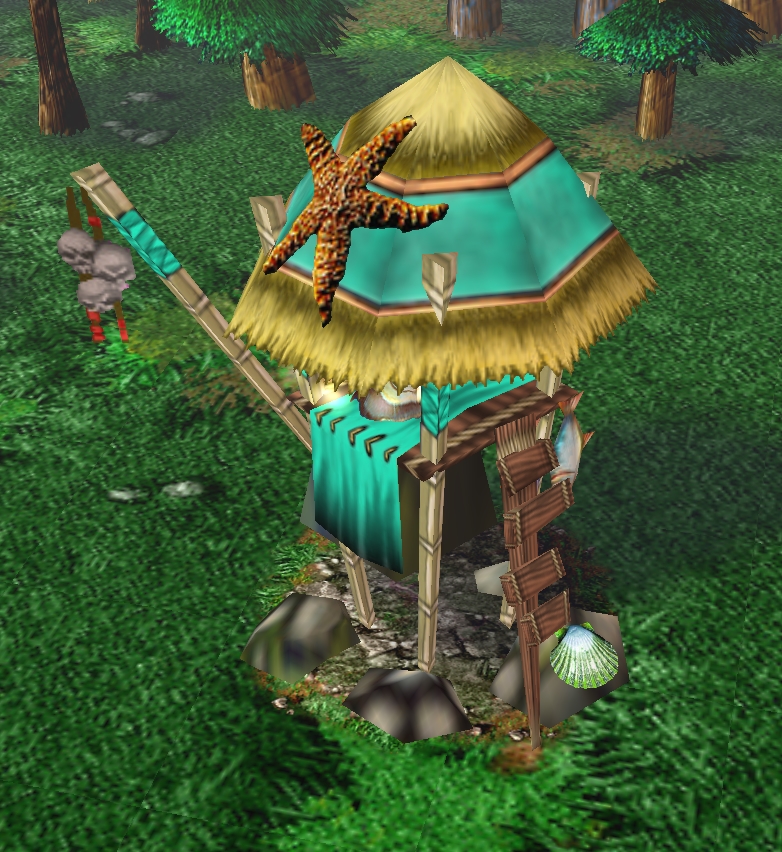Короткое описание - Небольшая хижина одного водяного, что очень любит собирать необычные вещи и обменивать их со своими сородичами. Иногда у него можно выменять ОЧЕНЬ необычные находки. А как он смог из целой лодки сделать себе крышу?