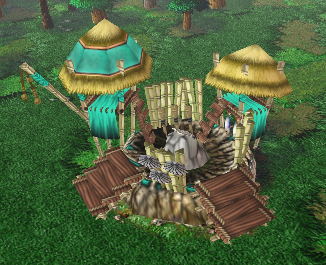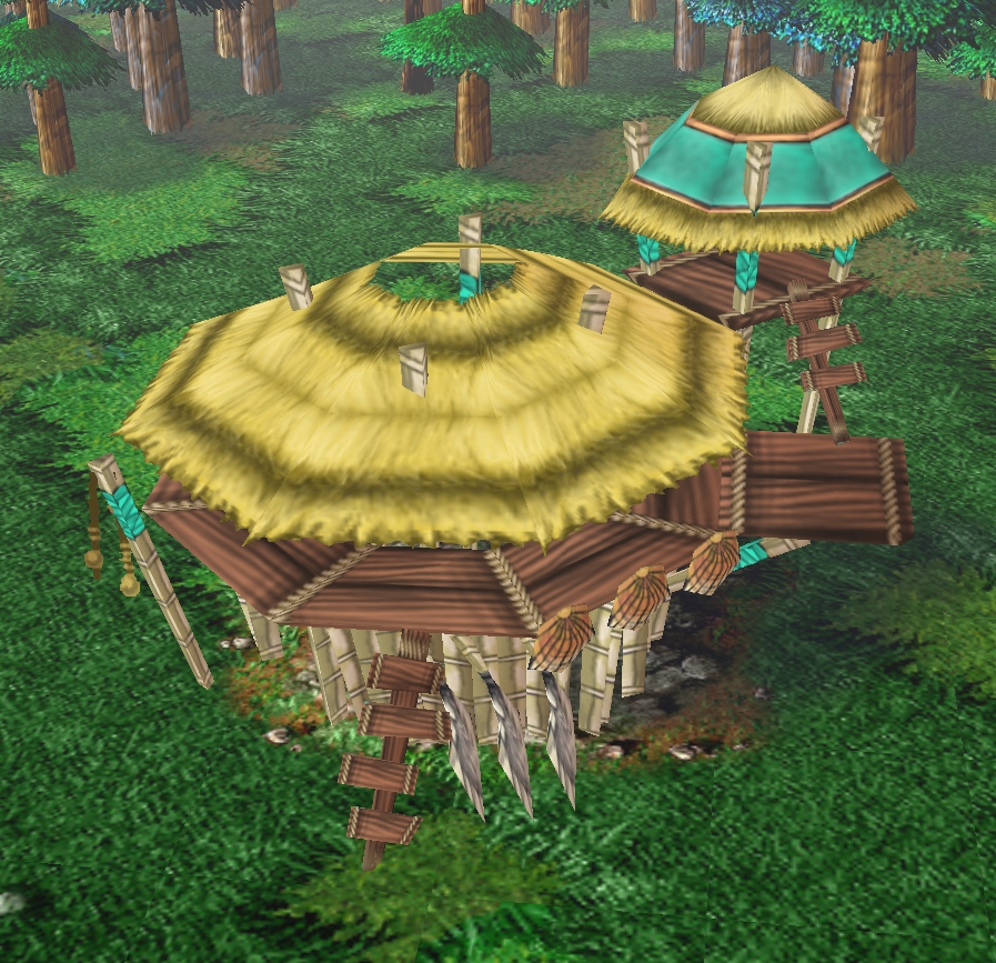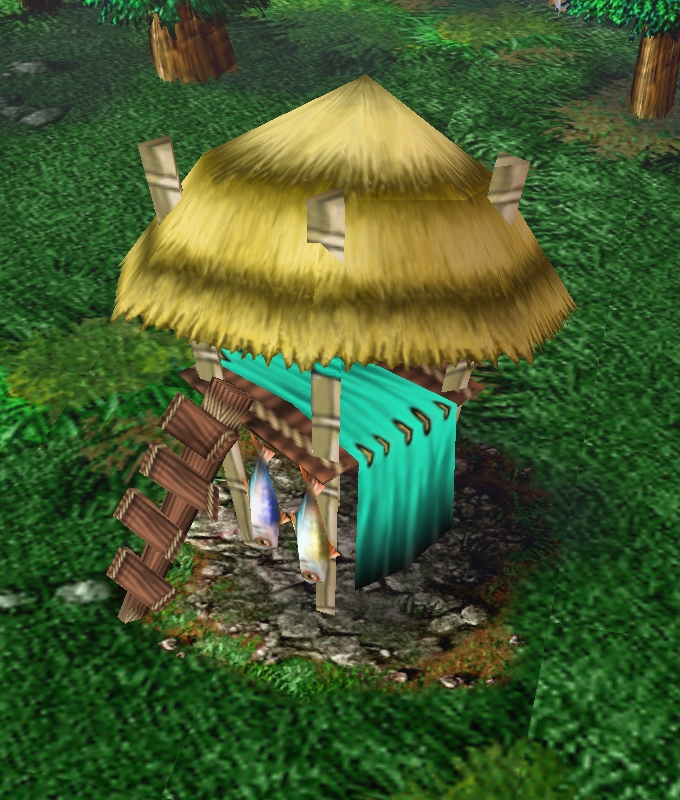 Короткое описание - Небольшое и ветхое сооружение из палок, веток и высокой травы в котором живут обычные водяные-рыбаки.