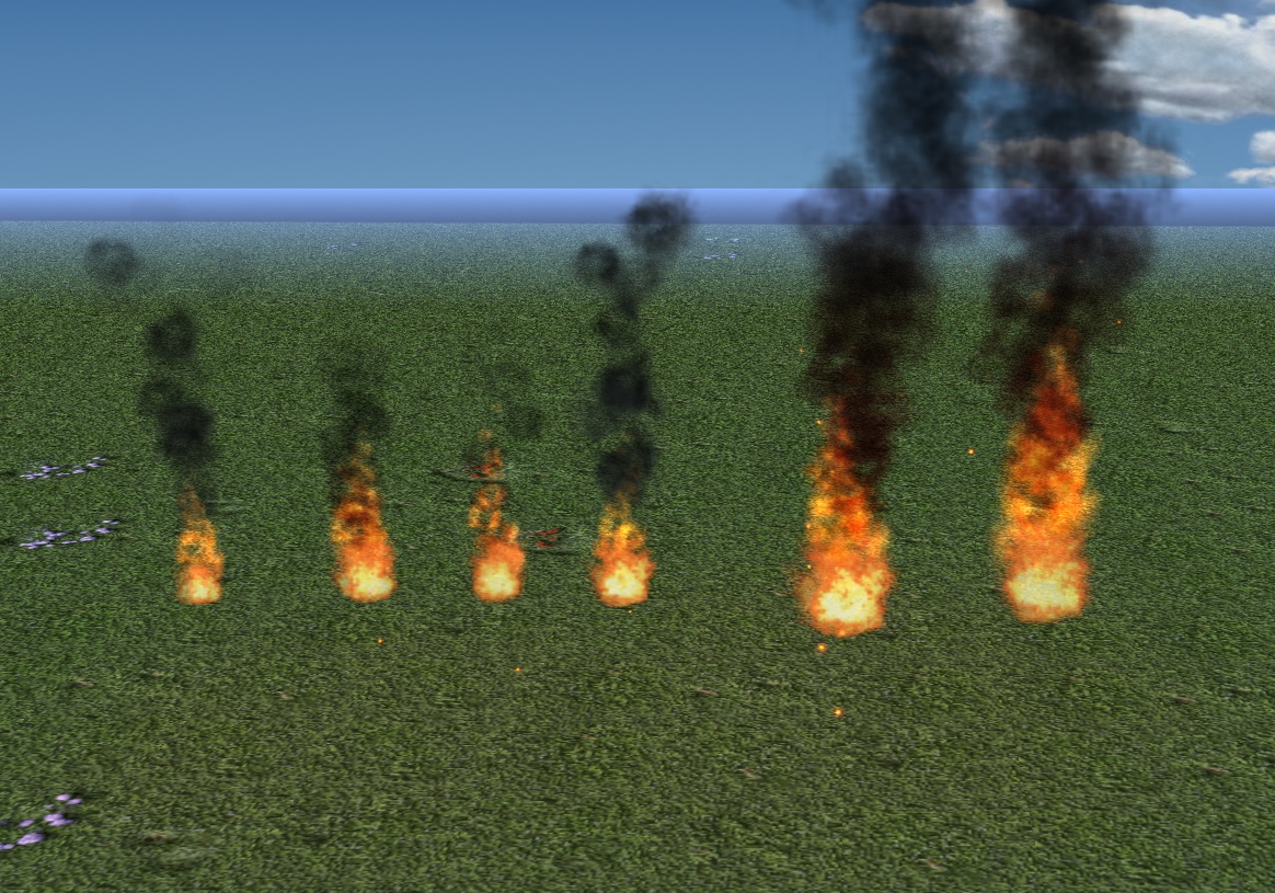 Небольшой пак спрайтового огня для создания эффектов пожара, факелов и т д. Имеет источники света. Можно использовать для аттачей абилок повреждения зданий и механизмов. Есть заменяемые текстуры дыма для зимы и лета. Текстуры огня в 2 вариантах - для маленьких огней и больших огней.