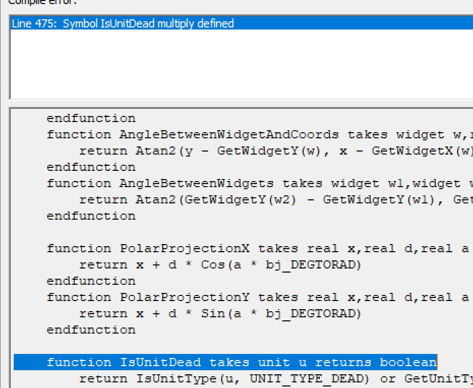 В jass только функции которые ниже могут вызывать функции которые выше. Чтобы отлавливать такое надо добавить