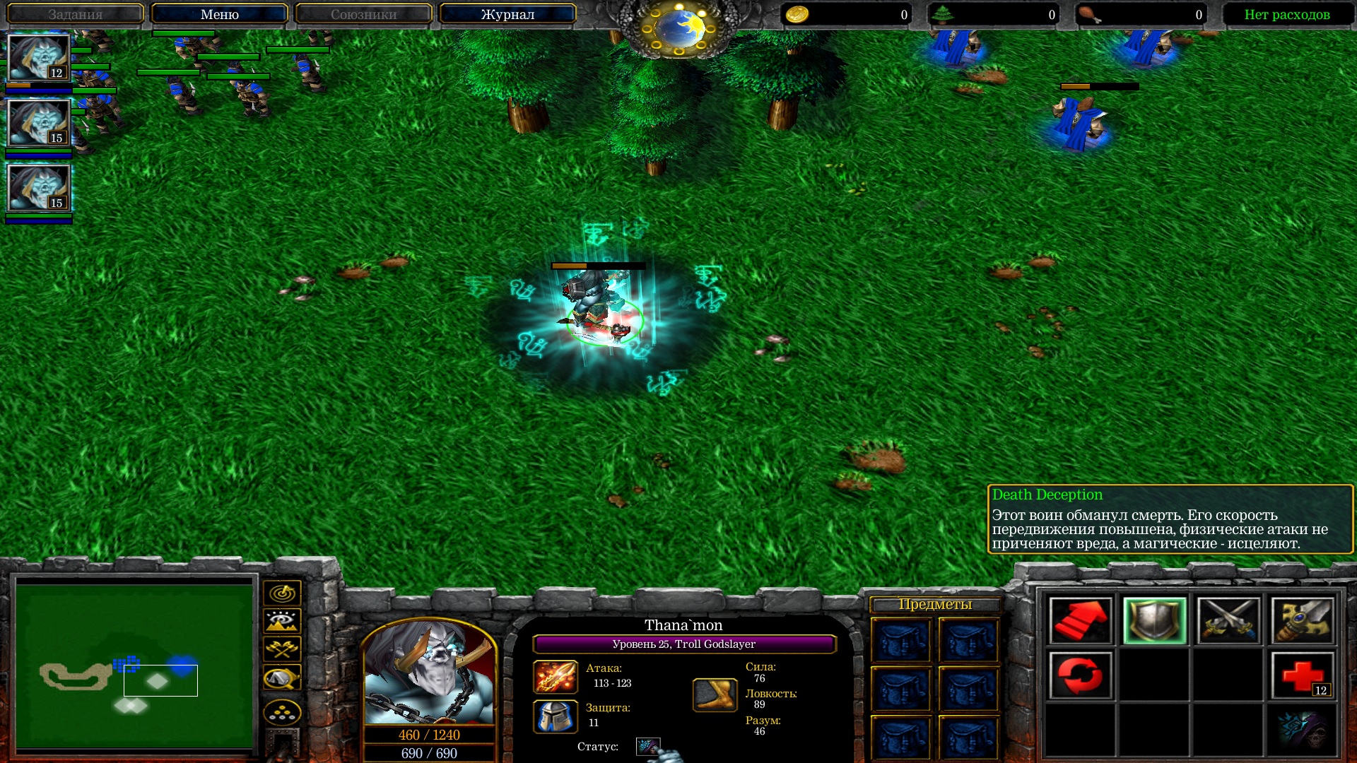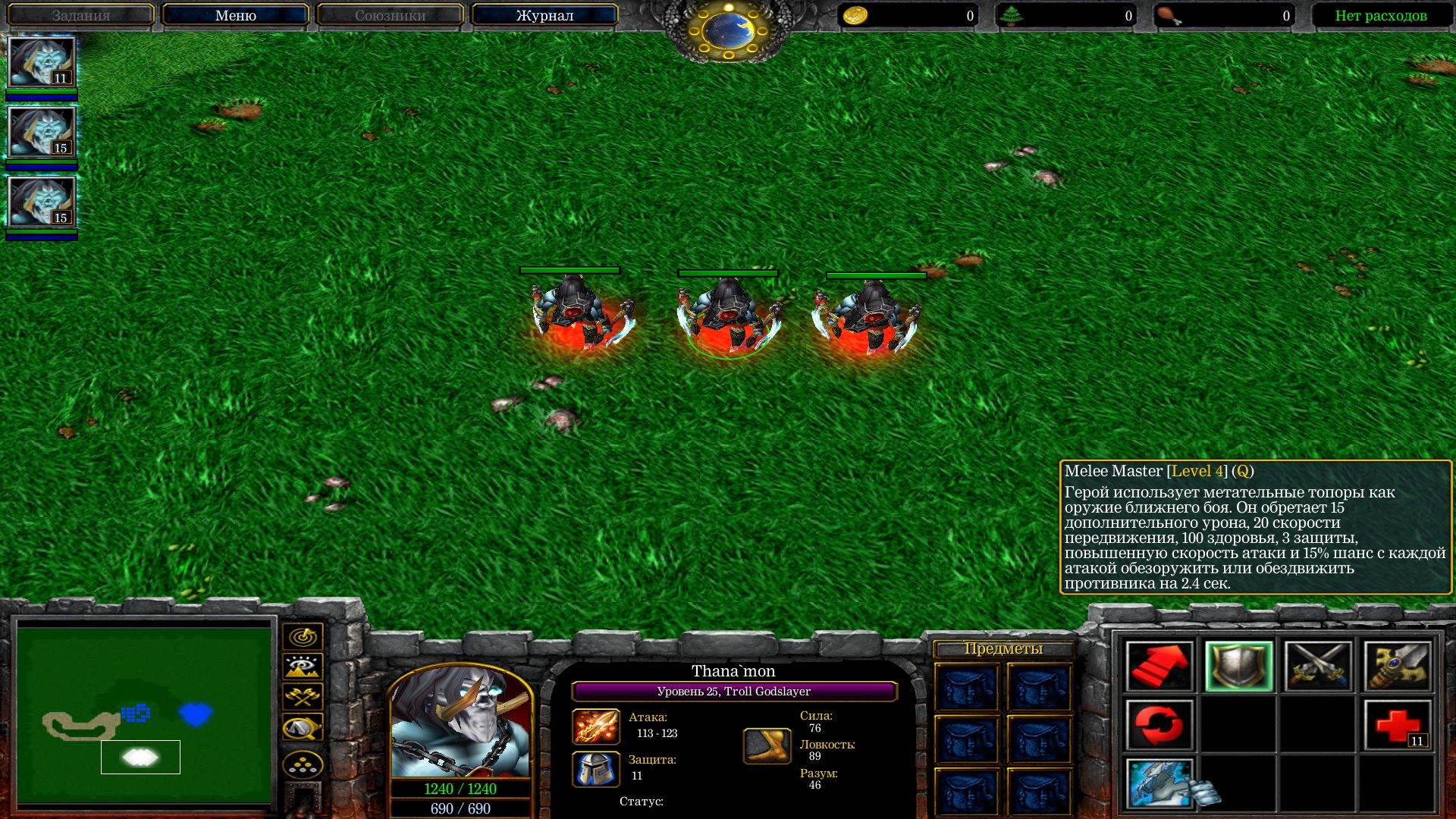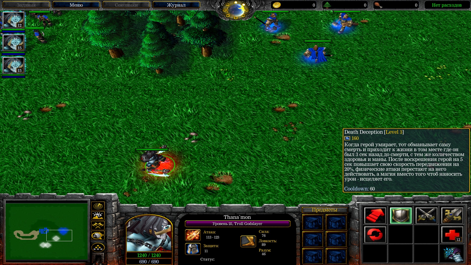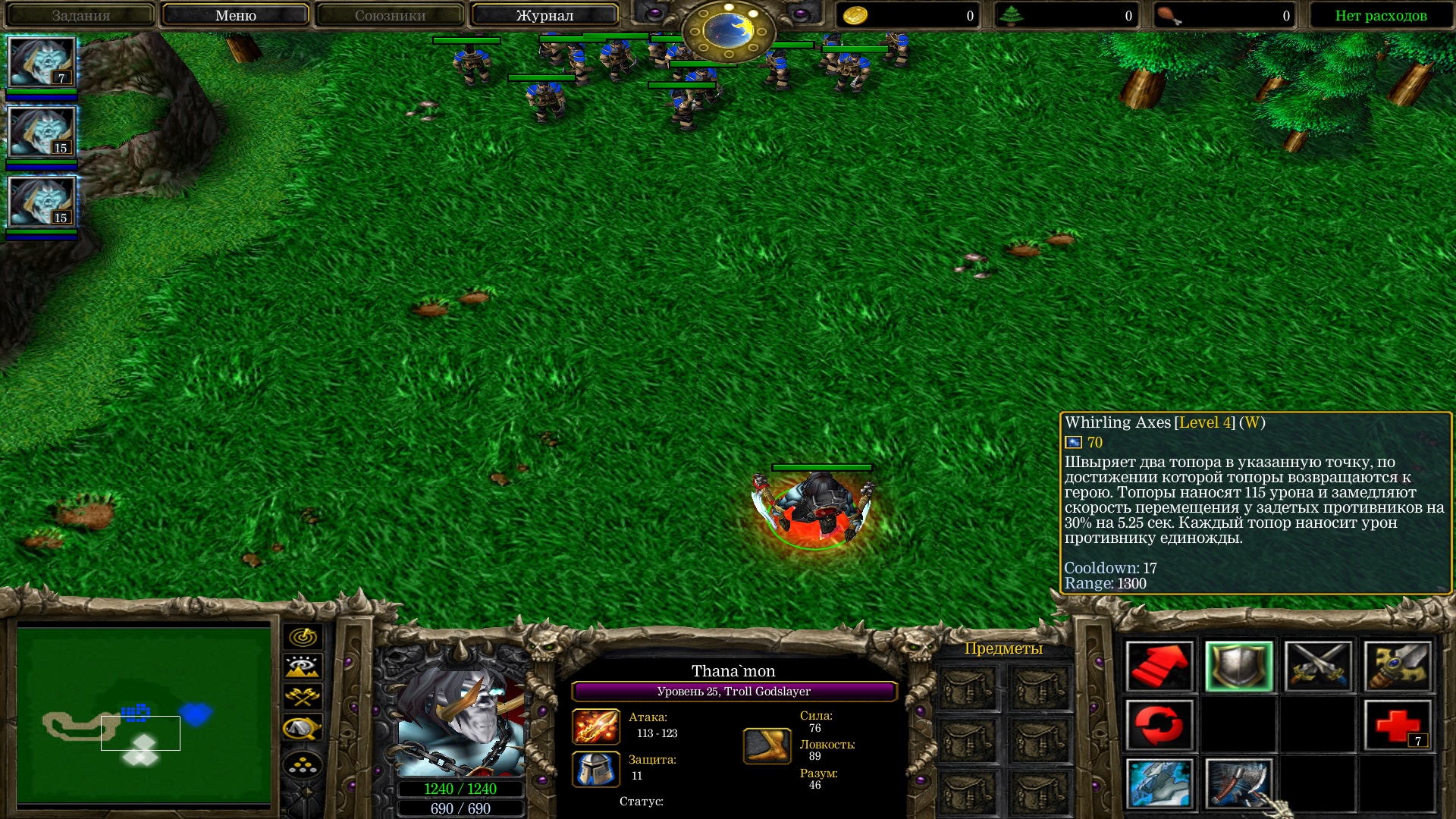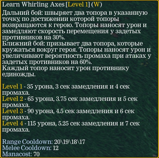 Было желание сделать что-то без использования синтаксиса cJass но идей особо небыло - так что за основу взял скилы из первой дотки которые давно хотел реализовать и немного переделал на свой лад. Все способности являются MUI. Сделано на хэшках через привязку к таймеру/триггеру.