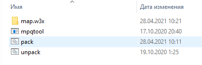 Ничего нового вы тут не увидите. Кладём mpqtool.exe и pack.bat рядом с картой в режиме папки, запускаем pack.bat и получаем готовую карту testmap.w3x