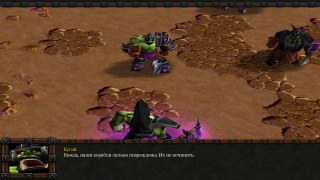 Дальше по карте снова произошла в целом не сильно сложная схватка с иглогривами. Однако здесь была добавлена ещё одна отсылка к официальной кампании. Гром отправил трёх волчьих всадников в пещеру для поисков Тралла. Также все воины получили вторые уровни улучшений. Также я снова заметил небольшую опечатку в тексте подсказки: