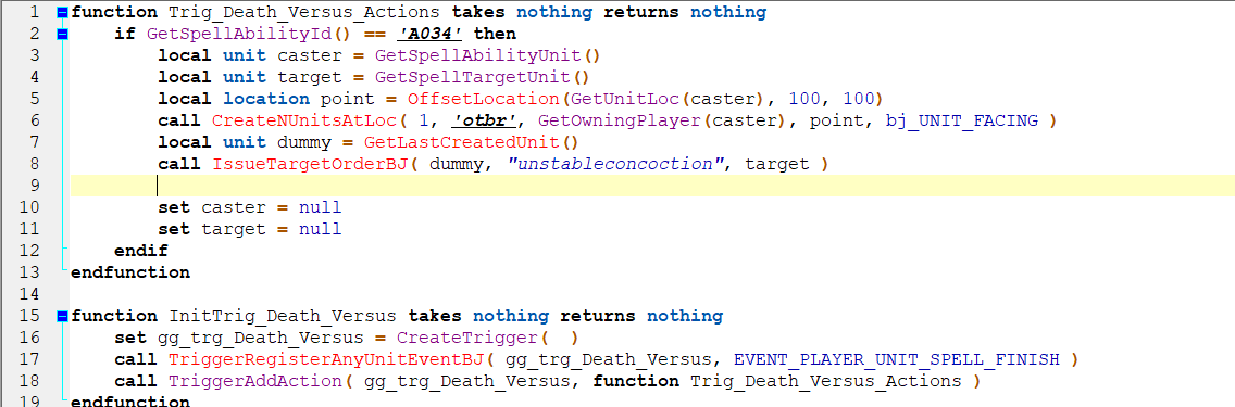 Собственно по приказу: Функция Get last created unit использует глобальную bj переменную bj_last_created_unit, ну или как то так она называется, соответственно может быть такая ситуация, что дамми - это юнит от одного потока, а цель - от другого, ну и соответственно это может не работать (триггерные конфликт). Пересадить всё только на локалки и тогда будет норм. Если, конечно, там нет ещё ошибок. Просто под рукой нет редактора, проверить не могу)