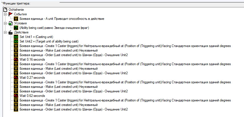 Остаётся применить очищение по юнитам в радиусе заклинания. я примерно понимаю алгоритм в общем плане, но не могу выбрать юнитов областью и не знаю как на каждого юнита отдельно задействовать заклинание. Сможете помочь?